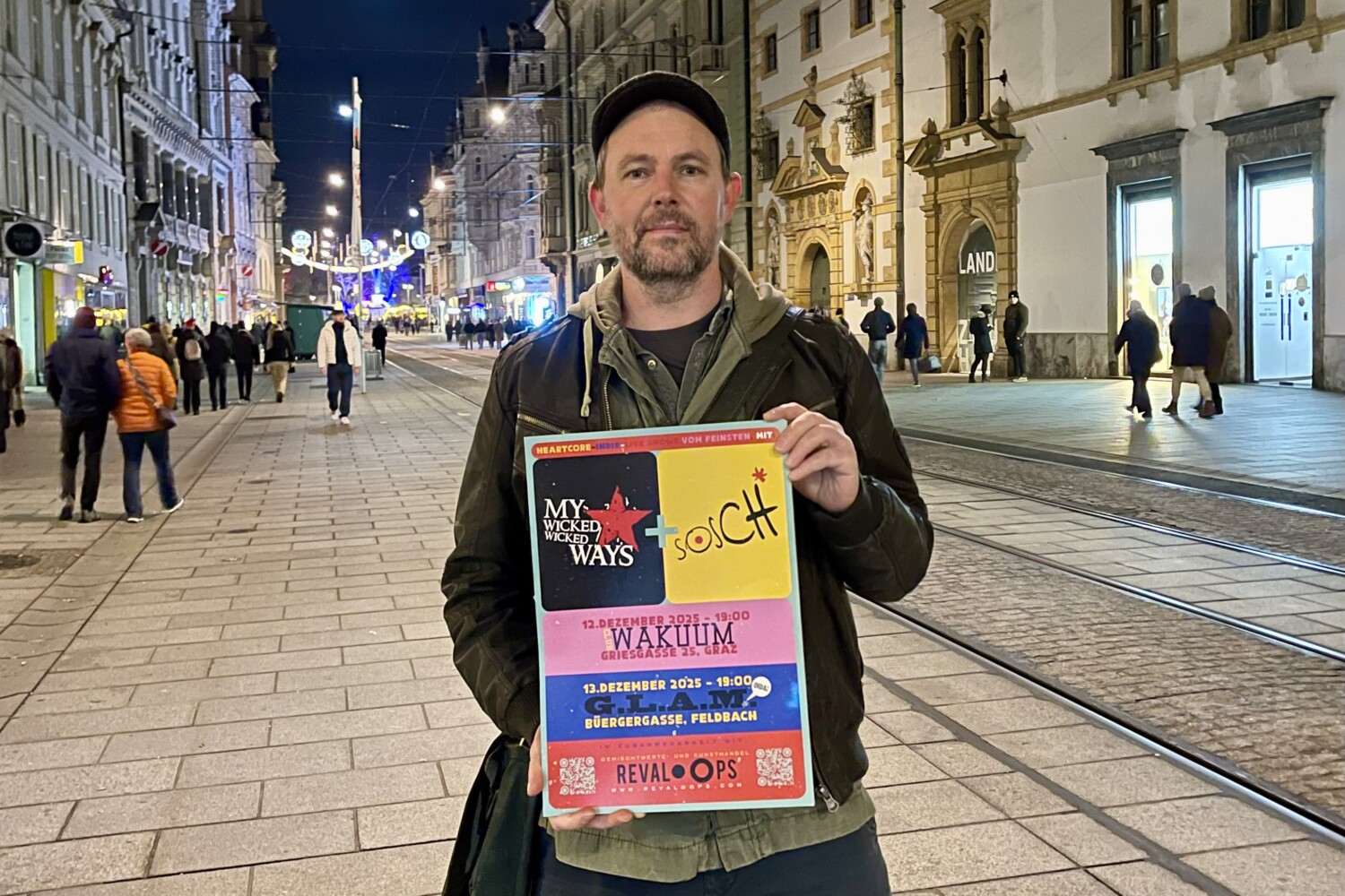 Am 12.12. fand unser 1. revaLoops Konzertabend mit unseren von weither gereisten Freundinnen von SoSch aus Vorarlberg und My Wicked Wicked Ways aus Graz statt. Und ich dabei, mit Merch – revaLoops Shirts, resistance Socken und ein paar Poster. Selten so einen schönen Abend erlebt.