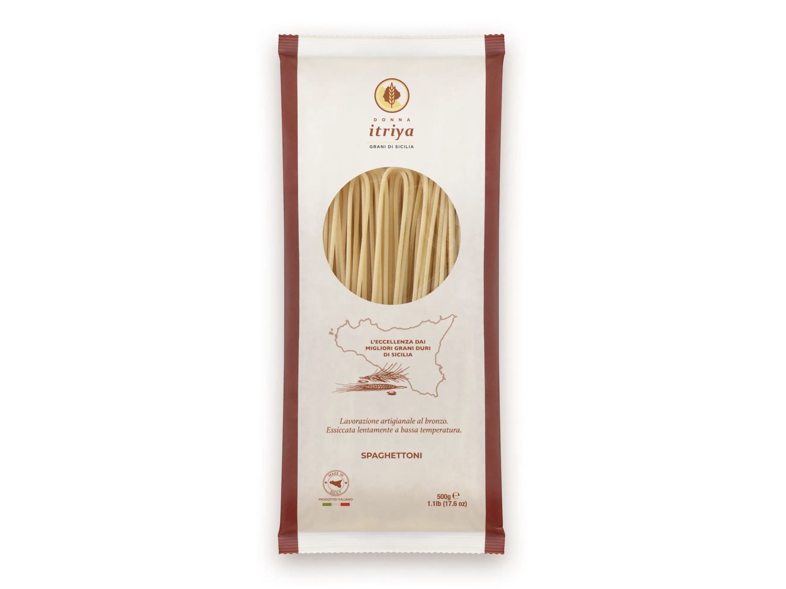 Diese kurze Geschichte beginnt nicht mit einer Begegnung, sondern mit einem Gefühl. Bei diesen Spagettoni war es exakt so. Als ich begonnen habe, mich nach einer passenden Pasta umzusehen, stoß ich auf „Donna Itriya“ und der kleinen Unternehmergruppe „Tria“. Recht schnell war klar, dass hier etwas mitschwingt, das sehr gut zu uns passt. Eine tiefe Verbundenheit mit der eigenen Geschichte, mit dem Weizen, mit dem Handwerk.