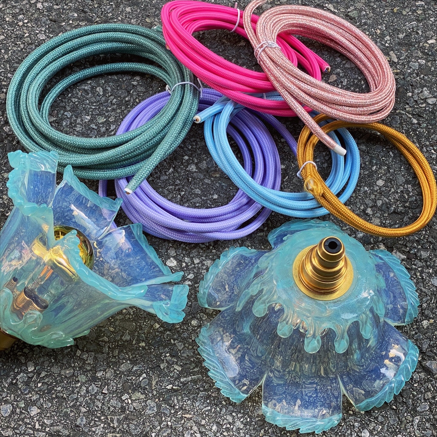 Damit sie heute wieder strahlen können, haben sie eine hochwertige, neue Fassung aus massivem Messing erhalten. Dazu gibt es ein Textilkabel in der Farbe deiner Wahl – ob klassisch in Gold, lebendig in Pink oder elegant in Petrol, du entscheidest selbst, wie dein persönliches Stück Geschichte in Szene gesetzt wird.