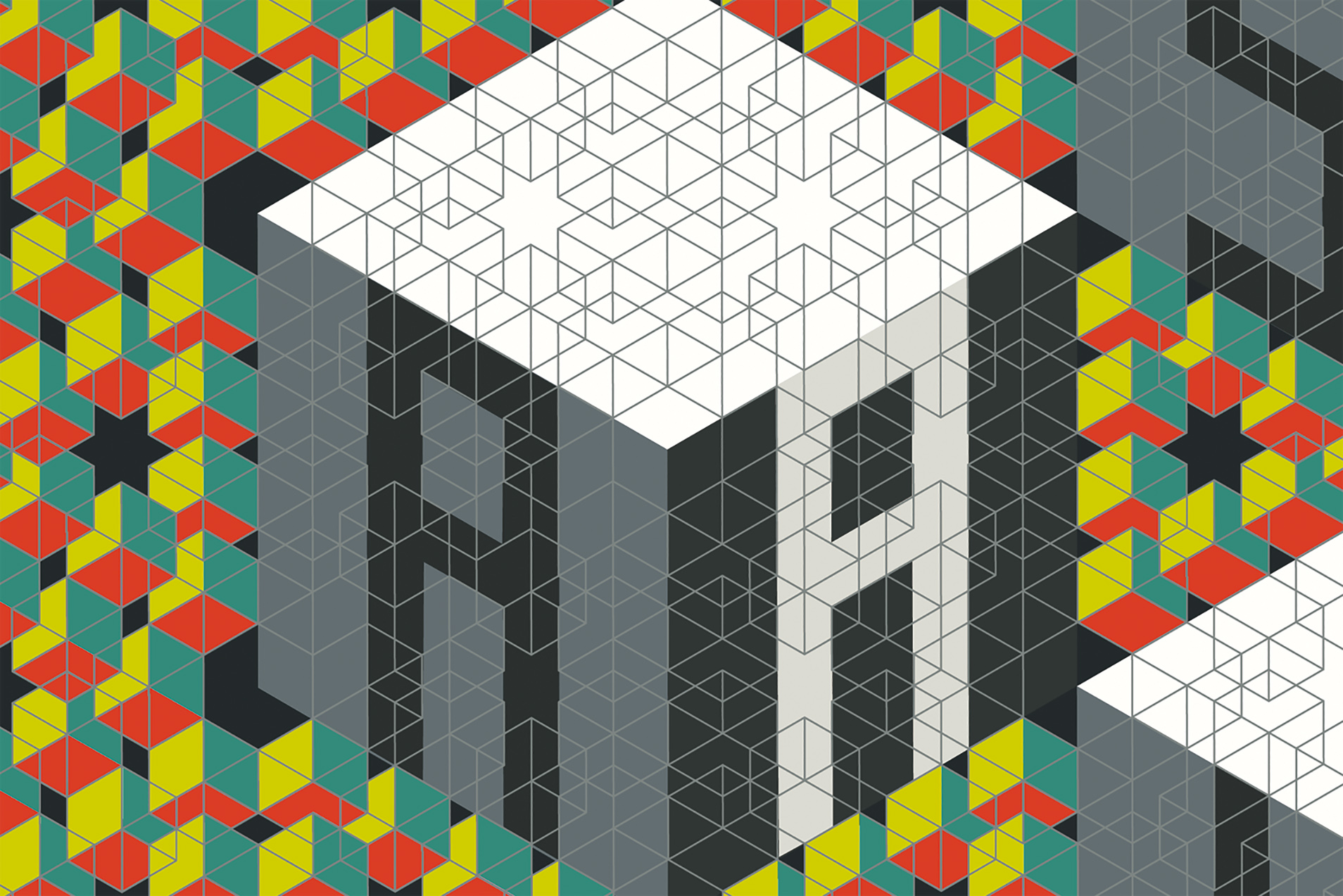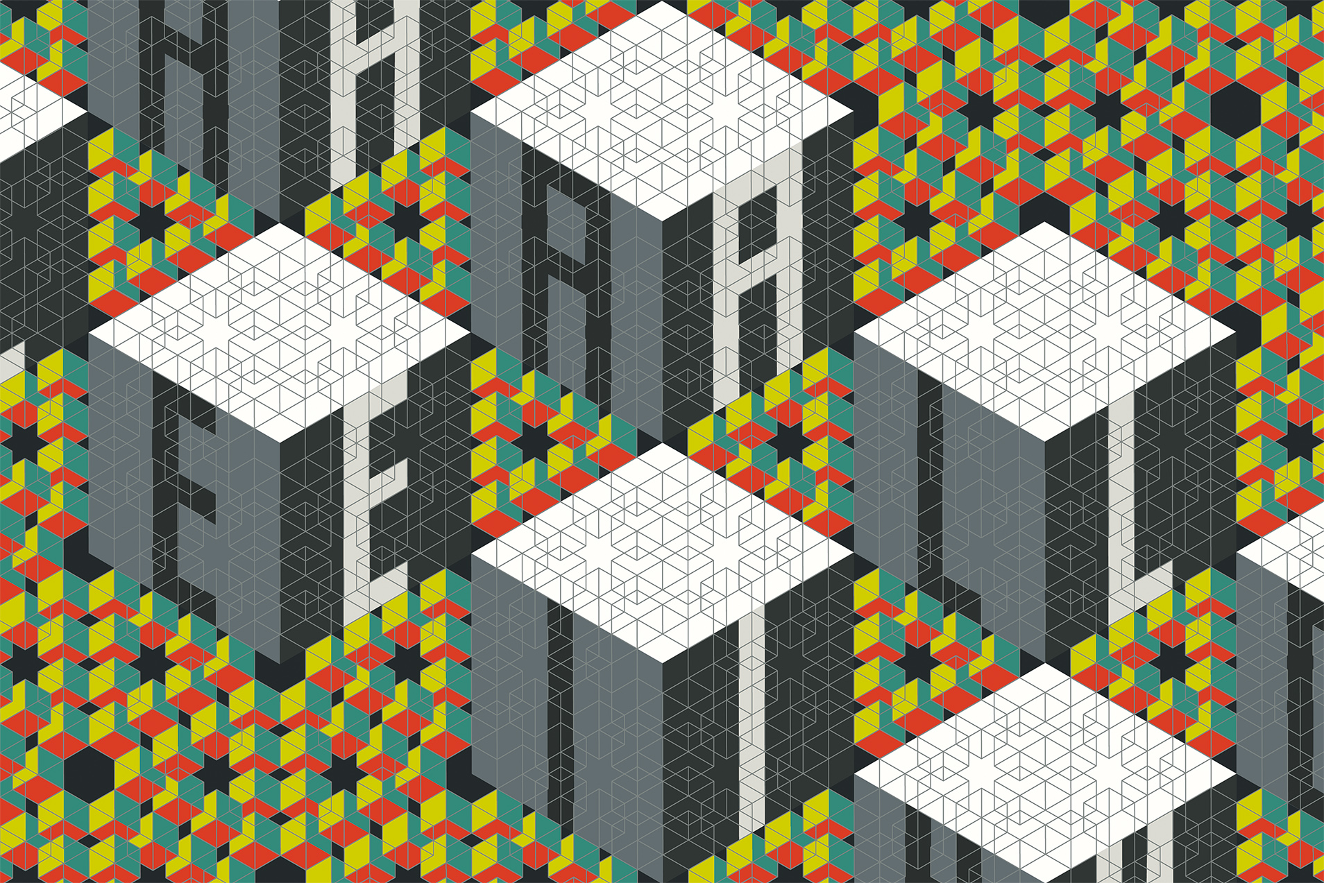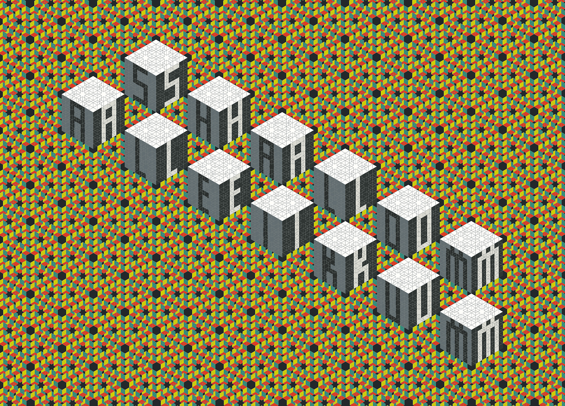 ‚Kongruenzen in verschiedenen Sprachen‘ würde es besser treffen. Aus den zwei augenscheinlichsten wollte ich eine Grafik machen. Aus dem Gruß der Araber:innen, dem „Salam Aleikum“, und dem der Jüd:innen, dem „Shalom“, und den Traditionen, die ich in deren beider Ornamentik wahrnahm, bzw. dem Diktum, man solle sich kein Bild von Gott machen.